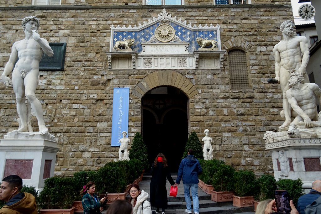 Santa María de Novella, Catedral de Santa María del Fiore, Galería de la Academia “David de Miguel Ángel”, Iglesia de la Santa Crocce, Puente Vechio sobre el río Arno, Loggia de Lonzi, Puerta de bronce del Baptisterio de Florencia, Estatua ecuestre de Cosme I de Médici, en la Piazza de la Signoria…